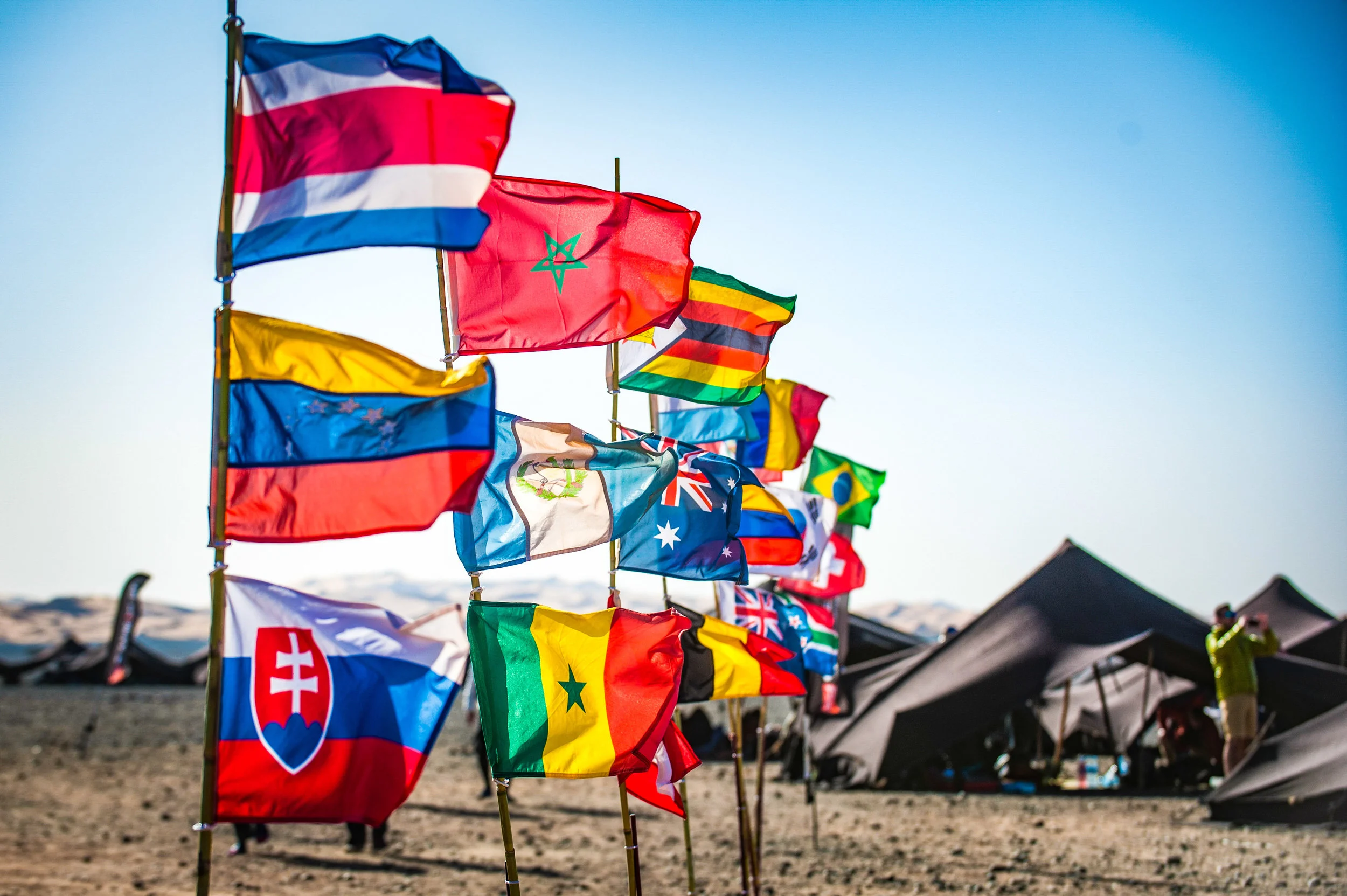 After boarding a bus from the hotel, all of the runners started the trip from Ouarzazate to the Sahara. It was about a 3 hour drive straight into the teeth of the most famous desert in the world. Due to the harsh terrain, the buses couldn't take us all the way into the first bivouac. Racers were forced to walk the last few hundred meters to officially enter the bivouac, and start the check-in process. Even though I had arrived at the start of the race, the competition still wouldn't begin for another day and a half. This gave all of us more time to think about the event that we were about to take on. As soon as I stepped foot off the bus the heat hit me like a brick to the face. The temperature change, even from Ouarzazate, was noticeable. This is the world that we were now in. Temperatures each day would regularly exceed 105 degrees Fahrenheit with the hottest days surpassing 110. Shortly after arriving in the Sahara Desert, all racers are assigned a tent and race number. This is where you meet the rest of the runners with whom you'll be sharing your tent for the duration of the race. Usually the tent number corresponds with your nationality, which means that you will likely spend the majority of the race with fellow countrymen, however I had an international tent, which I really enjoyed. In my tent there was a racer from Ireland, Morocco, and Colombia, along with a two other Americans.